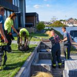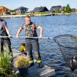Brandweer haalt gans met gebroken vleugel uit water bij Blauwestad