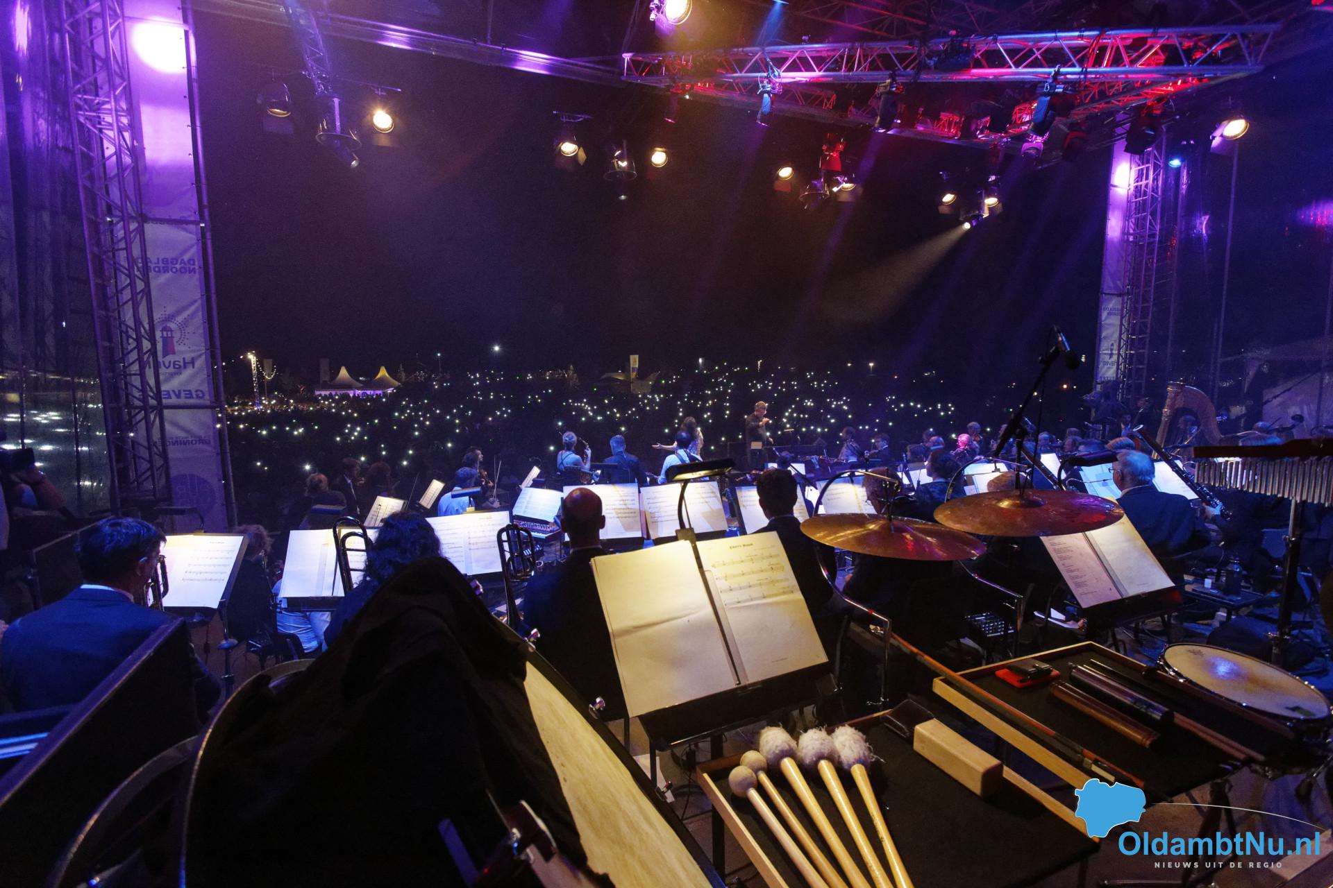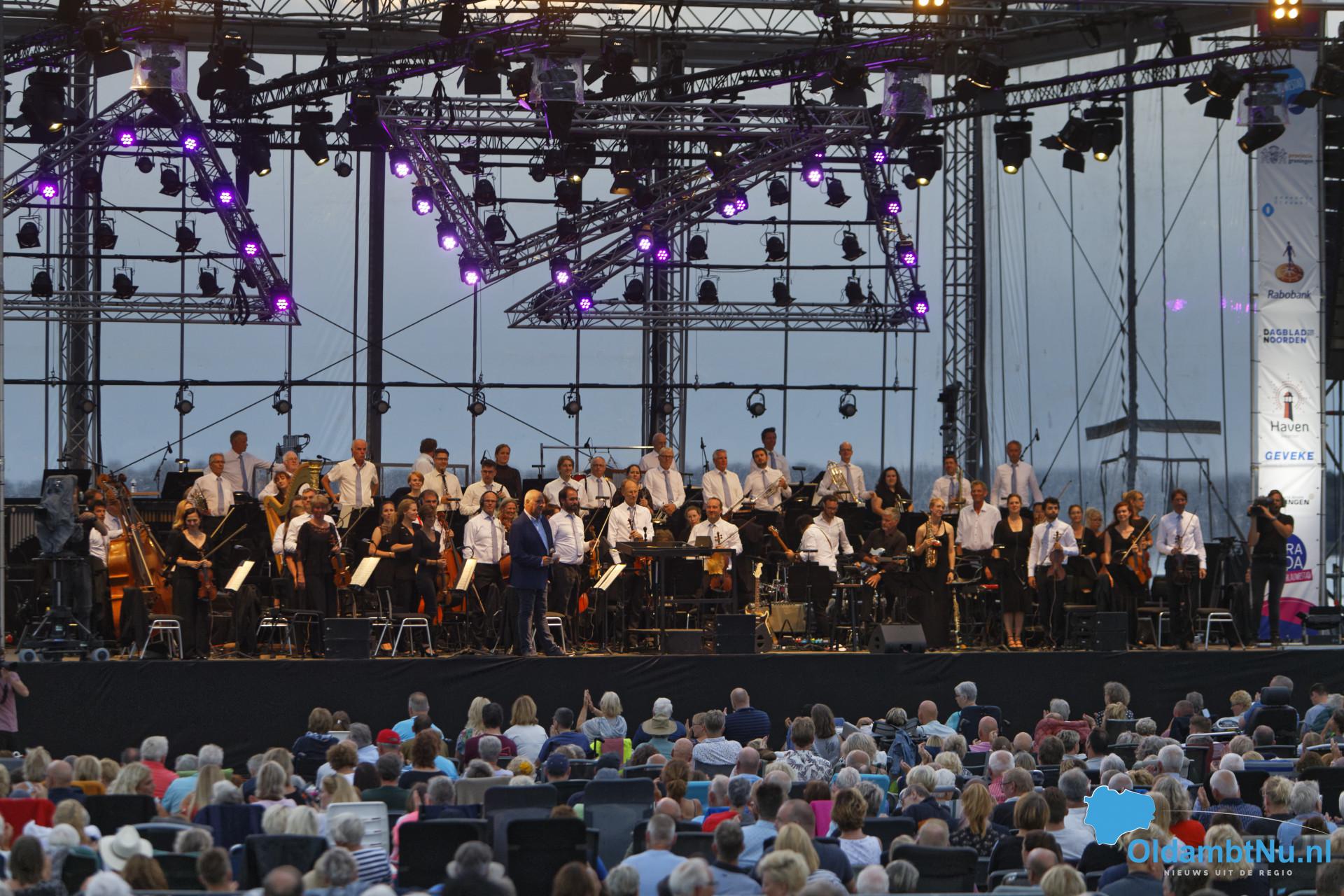 Blauwestad – Een zwoele nazomeravond, duizenden mensen gezellig bij elkaar, gezamenlijk genieten van prachtige muziek van het Noord Nederlands Orkest aan de oever van het Oldambtmeer.